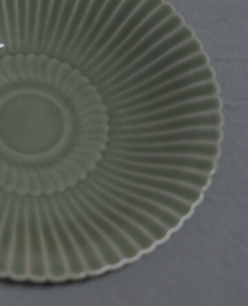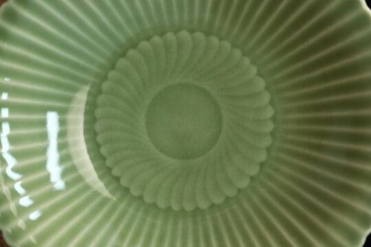 The plate takes its name from its distinctive chrysanthemum-petal rim, where the multi-lobed edges elegantly emulate the layered petals of a blooming chrysanthemum. This sculptural form enhances the vessel’s sense of movement and dimensionality. The surface is covered in a soft, pale green celadon glaze, admired for its jade-like translucency and tranquil tonal beauty. Together, the harmonious silhouette and luminous glaze exemplify the sophisticated aesthetic that defined Longquan ware at its height.